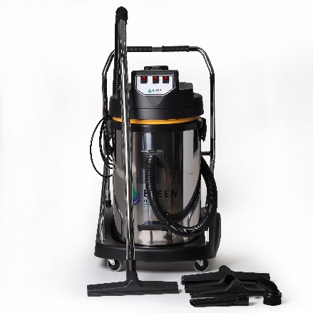 Italian wet and dry vacuum cleaner (liquids and dust) equipped with a tipper trolley and a 77 liter steel tank, Italian made, three 3600 watt suction motor, two stage, operating with 220 volt electricity – 50/60 Hz, weight 29 kg, Perfect for industrial use in car cleaning and polishing centers, home cleaning companies and personal use.
